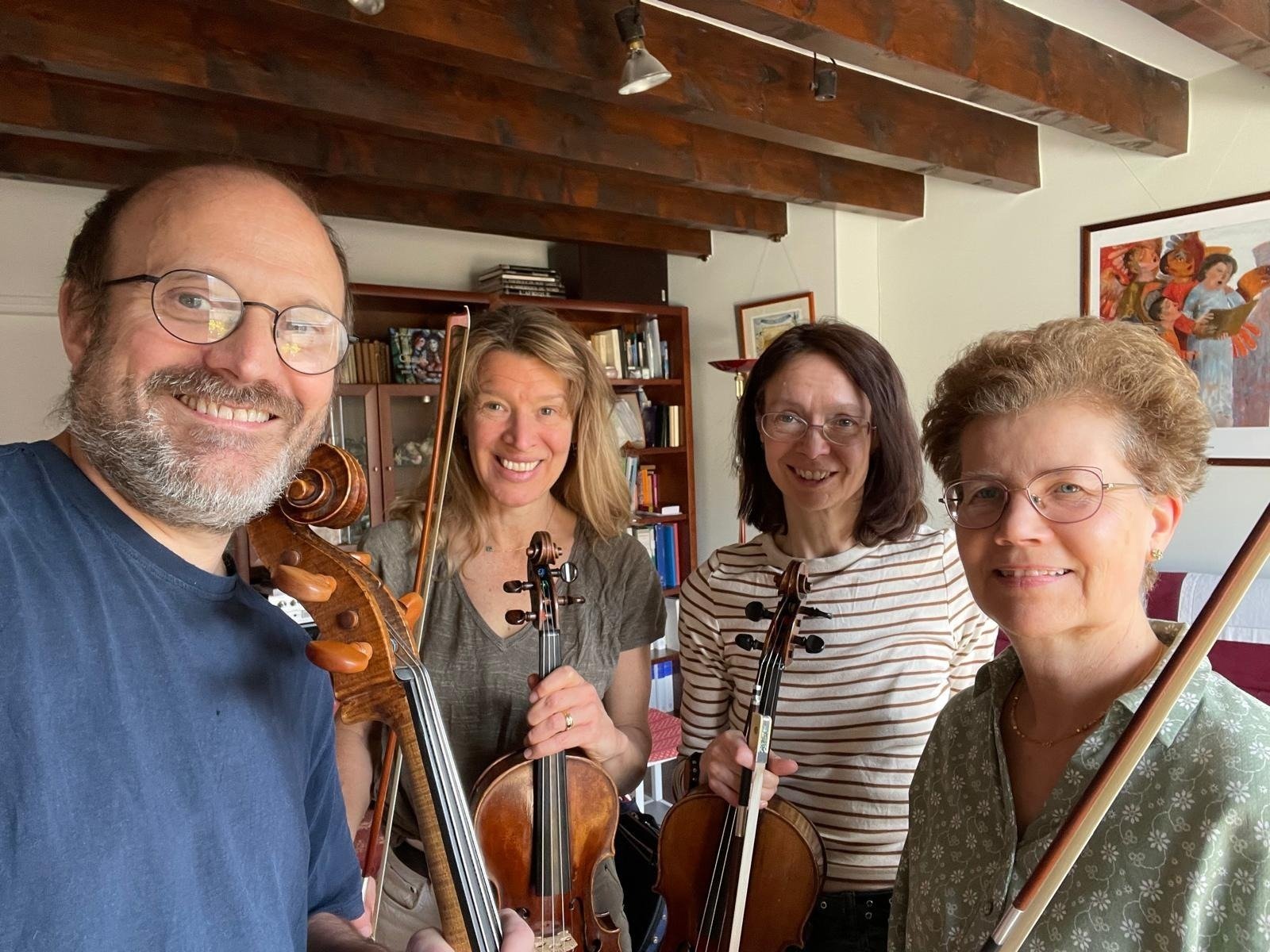 “Not quite a concert” – Franglais Quartet 5pm Saturday 25th April 2026 Temple de Gingins, Rue de l'église 9 - 1276 Gingins Valérie Chardon (violin), Jane Djate (violin), Philippa Welch (viola) & Jeremy Burrows (cello)
